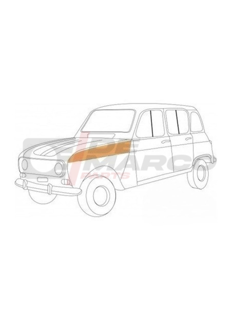 This sheet metal is designed to reinforce and protect the upper part of the left front inner wheel arch of the Renault 4, providing structural support and protection against impacts and stresses from daily vehicle use. It also helps prevent corrosion and wear on the underlying parts of the vehicle.