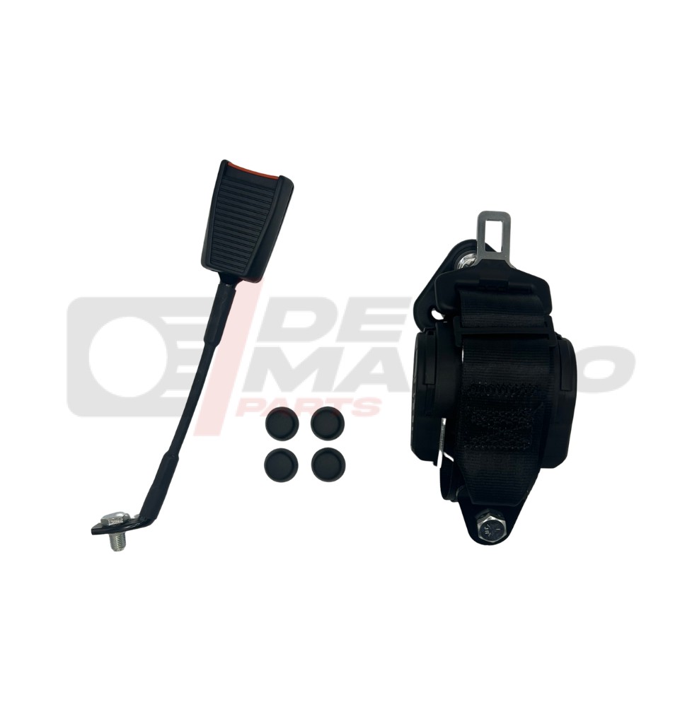 Este juego de cinturones de seguridad automáticos negros es universal y está homologado. Equipado con un retractor automático, está fabricado en Italia. Perfecto para coches clásicos, aporta seguridad y estilo a su vehículo. Instalación de tres puntos.