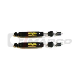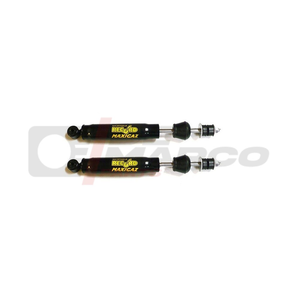 Par de amortiguadores delanteros de gas Record Maxigaz para Renault R5 Alpine y R5 Alpine Turbo. Garantizan un alto rendimiento en términos de confort y estabilidad.