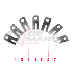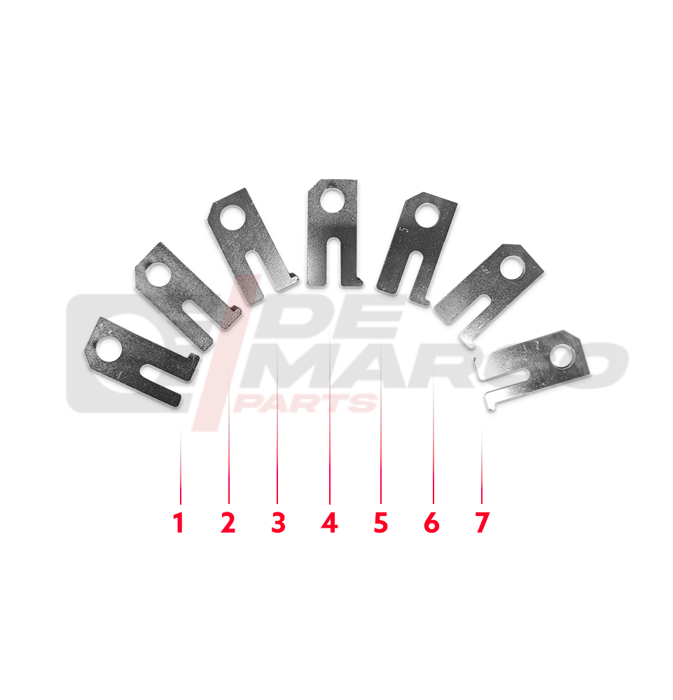 Este kit contiene 7 calzos de ajuste galvanizados, que son esenciales para ajustar la caja de dirección y la cremallera.