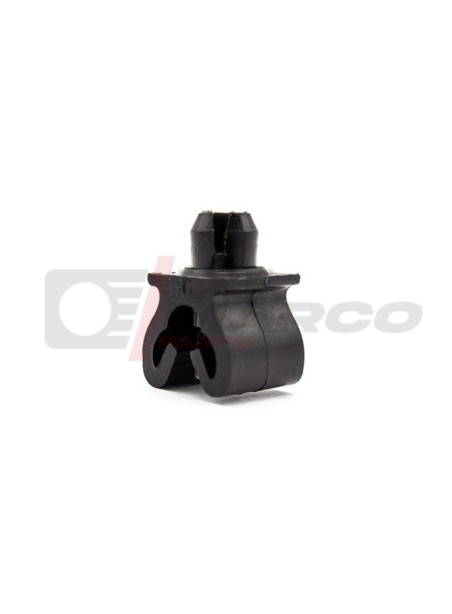 Clips de plástico negro resistentes para fijar las líneas de freno rígidas a los largueros. Aptos para Renault 4 clásicos.