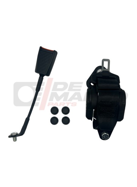 Cet ensemble de ceinture de sécurité noire automatique est universel et homologué. Équipé d'un enrouleur automatique, c'est un produit fabriqué en Italie. Parfait pour les voitures anciennes, il offre sécurité et style à votre véhicule. Installation à 3 points de fixation.