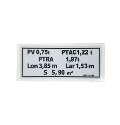 Adesivo carico utile Renault 4 F6. Questo adesivo viene posizionato sulla carrozzeria o nel vano motore.